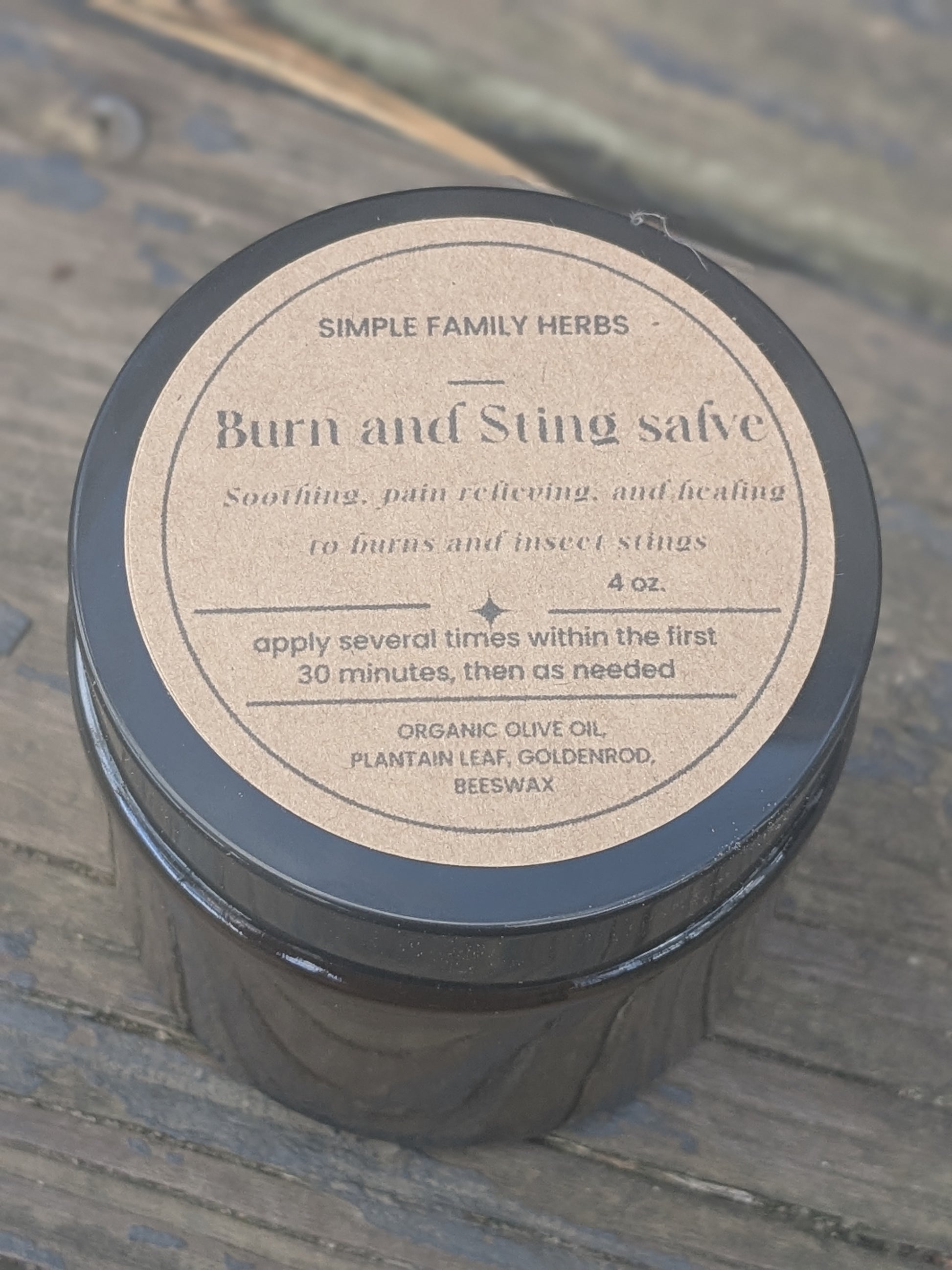 No one enjoys the pain of burns or insect stings! All you want is fast relief and speedy healing. This salve really delivers! Made with a the leaves of the goldenrod and plantain plants, this salve is a powerful remedy for helping relieve the pain or itching associated with burns and insect stings. Both herbs also have properties that assist with healing and may help prevent infection.